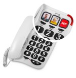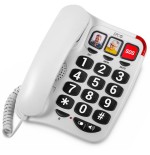Teléfono de teclas grandes ideal para personas mayores. Es compatible con audífonos. Además, cuenta con una luz de timbre.