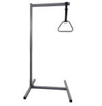 La base en forma de “H” aporta gran estabilidad y la escasa altura de sus patas permite introducirlo bajo la cama. El trapecio queda suspendido sobre el usuario, de modo que solo tiene que alargar la mano para incorporarse.