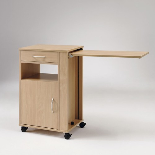 Este tipo de mesitas de noche con balda y bandejas autoelevables, es el complemento perfecto para una cama de altura graduable electrónicamente. De fabricación robusta, con ruedas incorporadas, facilitando así su traslado y su excelente distribución, diseñada especialmente para instituciones.