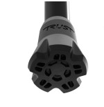 La empuñadura ergonómica de goma proporciona un agarre firme y confortable, complementando el robusto apoyo de antebrazo de plástico.