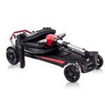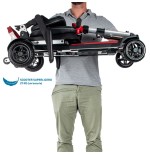 Su asiento y el mástil son plegables, esto lo transforma en el tamaño de una maleta que puede ser transportada cómodamente y sin esfuerzos. Además, incorpora unas ruedas de transporte incorporadas para poder arrastrarlo como una maleta.