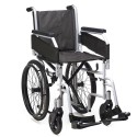 Esta silla es extraordinariamente estrecha (solo 50 cm.) para poder acceder por puertas y pasos normalmente vetados para las sillas convencionales. Silla plegable, con reposabrazos y reposapiés desmontables. Ruedas traseras autopropulsables de 500 mm ø montadas por debajo del asiento para reducir el ancho total de la silla.