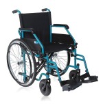 Silla de ruedas plegable, con ruedas autopropulsables, reposapiés extraíbles y regulables en altura y frenos de tambor. Se trata de una silla de ruedas económica, para uso esporádico o traslados.