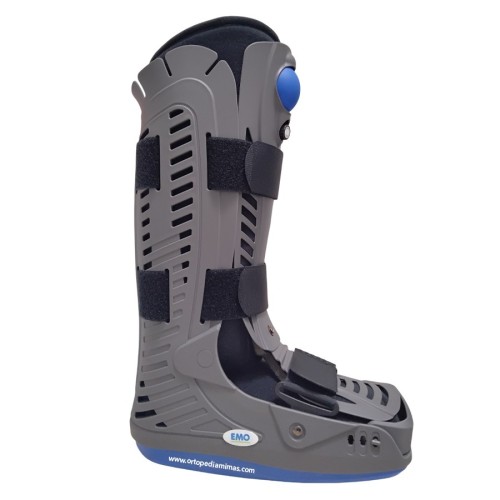 Órtesis tibial de marcha en descarga, diseñada para inmovilizar el tobillo a 90º con posibilidad de control de rango de movimiento de flexo-extensión.